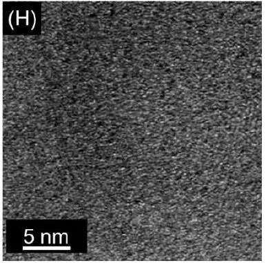 圖F為一個典型的砂磨后的Ta-LLZO顆粒的STEM照片。經(jīng)過砂磨的細顆粒表面較為粗糙,對其中白色虛線框標記的區(qū)域做選區(qū)電子衍射(SAED),結(jié)果如圖G所示。電子衍射花樣為展寬明顯的多晶德拜環(huán),最亮的環(huán)對應于晶面間距為0.31nm的(240)面。該面間距比純Ta-LLZO粉體和H+交換后的Ta-LLZO晶格中的數(shù)值大。說明砂磨后的細Ta-LLZO顆粒表面和內(nèi)部晶格變形并多晶化。圖H為顆粒表面的HRTEM原子排列圖像。該圖像表明,Ta-LLZO在極小的疇區(qū)內(nèi)(1~2nm)有序排列,但不同疇區(qū)的排列完全是無序的,進一步證實了砂磨顆粒的多晶化,利于后續(xù)燒結(jié)。